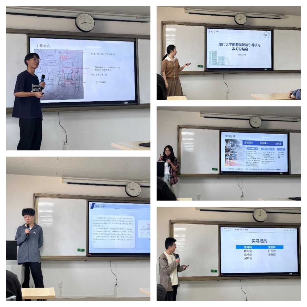 7月4日上午,厦门大学能源学院本科生2025年宁德核电站实习总结会在JH楼401召开。总结会上,实习生们根据工作岗位进行分组,小组合作进行汇报。各位实习生分别从岗位介绍,工作内容,实习收获,心得感悟等方面进行分享,并对在实习过程中给予了教导与帮助的师傅与老师们表达了感谢。