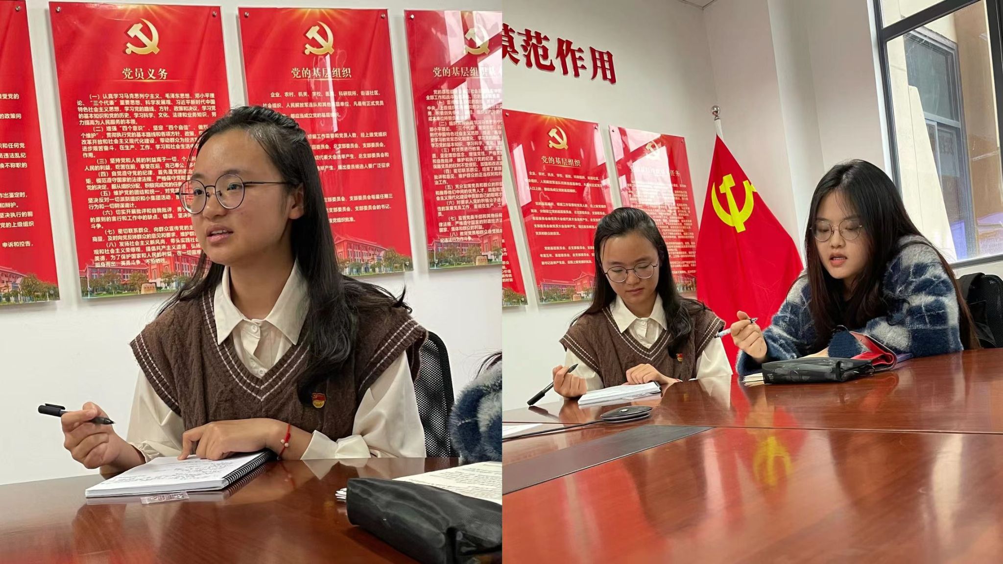 随后,本科生少数民族党员杨柔迪、李佳姝结合学习和生活实际先后发言。杨柔迪家乡是四川省攀枝花市,民族是土家族,她说,攀枝花被称为“钢铁之城”“钒钛之城”,近年来,党委和政府积极作为,树牢绿水青山就是金山银山理念,城市成功转型为“阳光花城”“康养之城”,康养旅游、民俗体验和水果种植成为帮助攀枝花各贫困地区、少数民族聚集区脱贫的制胜法宝,攀枝花在2021年被评为了中国最具幸福感的城市之一。李佳姝家乡是内蒙古赤峰市,民族是满族,她说自己所在的赤峰市随处可见“民族融合”的痕迹,各民族互相尊重、和谐相处,自己就读的厦门大学是一个各民族学生和老师和谐相处的大家园,各民族是互相无法分割的、血脉相通的共同体,每个人都应发扬中华传统美德,铸牢中华民族共同体意识,坚定不移地维护民族团结。