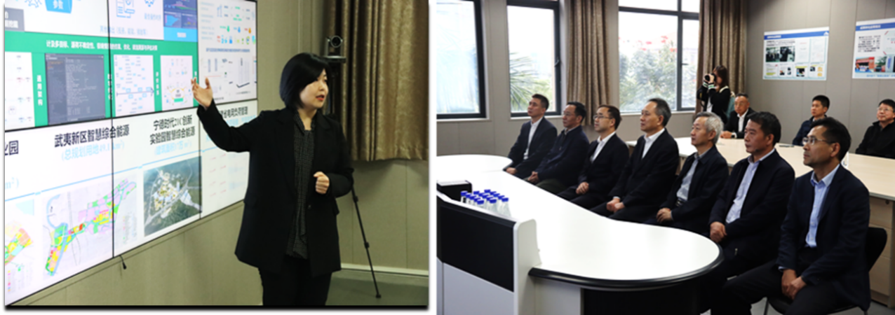 副院长赵英汝为汤广福院士一行详细介绍了能源学院的建设历程、目标使命、研发布局和创新成果,并表示学院近年来积极探索高校-行业协会/学会-企业协同共进的新模式,致力于战略科技创新,为服务地方产业发展提供强劲动力。厦门大学能源学院是福建省电机工程学会副理事长单位,也是其新能源专委会的依托单位,厦门大学-福建省电机工程学会-国家电网等企业已构建协同共进的创新模式,共同为福建省产业发展提供技术支撑。