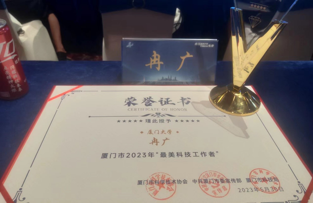 5月30日上午,厦门市举办2023年厦门市“全国科技工作者日”暨2023年“最美科技工作者”和“最美科技工作者团体”学习宣传活动启动仪式。厦门市“最美科技工作者”和“最美科技工作者团体”评选活动旨在大力弘扬科学家精神,做好对广大科技工作者的政治引领,激发科技工作者的荣誉感、自豪感、责任感,团结凝聚厦门市广大科技工作者以强大的创新自信奋进高水平科技自立自强新征程。本年度共评出“最美科技工作者”10人、“最美科技工作者团体”10个,我院冉广教授获评2023年度厦门市最美科技工作者称号。