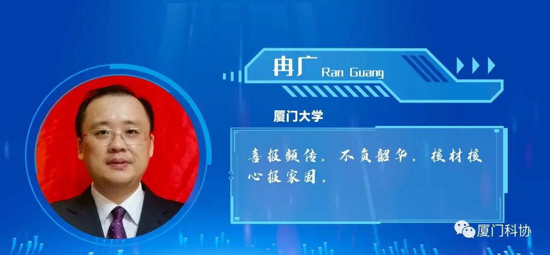 获奖人简介:冉广,国家杰出青年科学基金获得者,厦门大学科学技术处副处长,南强特聘教授、博士生导师。福建省级和厦门市级A类高层次人才,福建省高等学校新世纪优秀人才。在国家能源重大需求和国家战略威慑力支柱的核能领域,长期致力于核能关键材料和辐照行为机制的理论体系创新和关键技术难题解决,取得系列原创成果,部分研究结果得到实际应用。主持包括6项国家自然科学基金在内的主要项目20余项。发表论文150余篇,以第1发明人授权发明专利8项。以第1顺位获得中国发明协会创业奖创新奖一等奖、厦门市科学技术进步奖二等奖等科技奖励。担任福建省核能工程技术研究中心主任,中国核学会辐照效应分会副理事长、核工程力学分会常务理事等。担任福清核电有限公司专家委专家、苏州热工院特聘高级技术顾问、中国核动力研究设计院外聘专家、武汉科技大学客座教授等。担任《Nuclear Analysis》、《材料热处理学报》、《金属热处理》、《Frontiers in Energy Research》等期刊编委。获中国产学研合作创新奖。