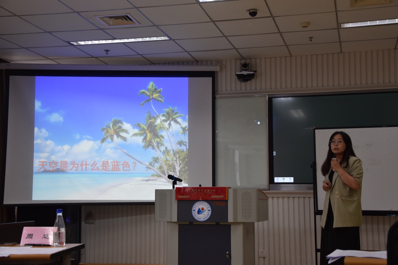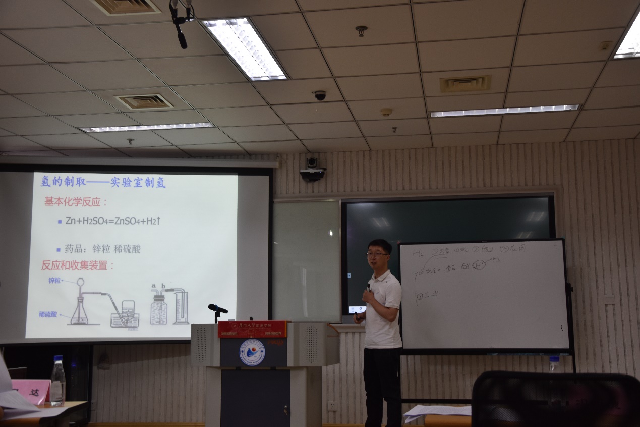 本次比赛特别邀请了数学科学学院周达老师与能源学院周尧老师、缪惠芳老师一同担任评委。林志彬、胡晓慧老师给我们带来了具有鲜明学院特色的《新能源综合实验》;孙毅飞老师用具有磁性的英语教学,获得了在场每一个人的认可。王德超老师用《氢能概论》的课堂向大家展示了一个新颖的氢能世界;张月皎老师对《仪器表征与分析》的拉曼光谱进行讲解,教学内容深入浅出,教学气场十足。每位教师都对本次比赛做了充分的准备,通过短短二十分钟的讲授,把各自的教学特色展示得淋漓尽致,授课条理清晰,课件新颖生动,为大家展示了各具特色的教学内容。