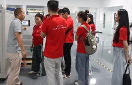 实践队成员们在储能技术部门负责人王立的带领下,参观了公司新建成的研发实验室。他向同学们展示了小功率直流充电设备(20KW),该设备具有充电快、噪音小的特点,可应用在商场停车场等对声音较为敏感的地域,具有非常广阔的发展前景。他还依次介绍了高低温测试、电网波动测试、模拟静电测试等性能测试所需的专业知识,并重点解释了PCB板的工作原理。罗俊峰老师和同学们对之前专业所未涉及的知识产生了浓厚的兴趣,与王立展开了积极的讨论与交流,使研发实验室的参观变成了一堂别开生面的互动课程。