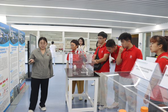 会议过后,实践队一行人在负责人的带队下来到了陕煤研究院的新能源展厅。新能源研究所的马博士对同学们的到来表示热烈欢迎,讲解过程中,他结合实际的沙盘模型,具体地介绍了在不同地新能源领域中的一些重要材料样例以及相关设备,从专业的角度分析了四个赛道发展上取得的相关成就和存在的弊端与技术壁垒。在马博士生动的讲解下,同学们对各个赛道的最新研究进展产生了浓厚兴趣,有队员们就氢能领域向马博士提了几个针对性的问题,如探讨氢能发展的下一步计划等。之后实践队成员们来到了化工研究所的展厅,这个展厅主要展示了陕煤研究院近年来重点推进的与煤化工产业相关的项目,多数项目已进入到中试阶段,陕煤集团与厦门大学化学化工学院之间的重点合作项目也在其中。在讲解员的细致讲解下,实践队员们对于陕煤研究院的科技产业化和产业科技化思路有了更加深刻的理解。