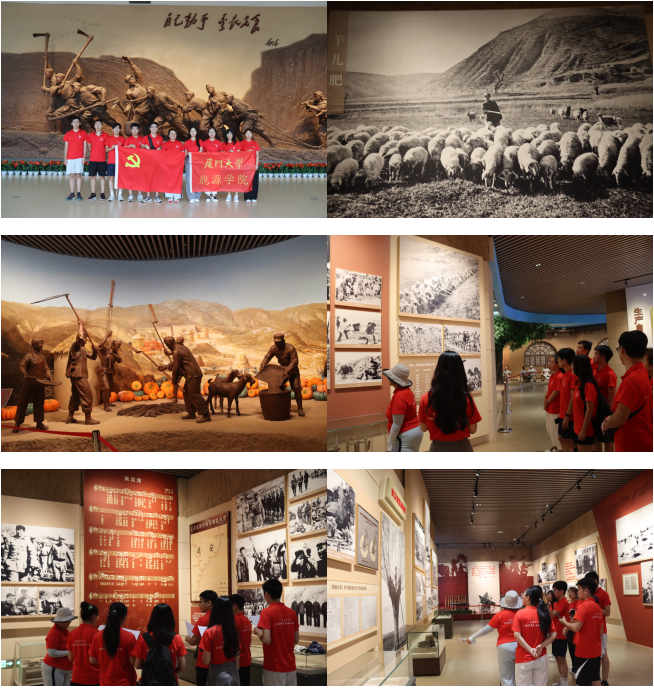 随后,实践队出发前往参观南泥湾大生产纪念馆。通过参观展厅展出的文物、雕塑、相片等等,实践队成员们更加直观地了解到军民大生产时期南泥湾的富饶风貌,学习了大生产运动以及359旅边开垦边练兵的革命历史。在展厅里,实践队成员们还齐声共唱歌曲《南泥湾》,歌颂南泥湾军民的伟大贡献。