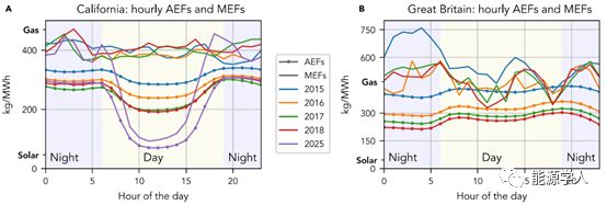 边际排放系数(MEFs)可以测量与电力变化有关的排放变化,也以kgCO2eq/MWhe为单位,MEFs是AEFs的一个辅助工具,因为它们分别对应于系统中边际发电机或消费者的排放强度。虽然AEFs可用于测量碳痕迹,但MEFs是电力系统对消耗或发电变化响应的直接测量,因此可以估计短期和长期的环境影响。