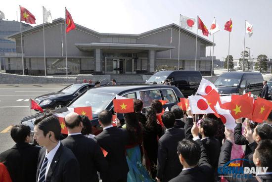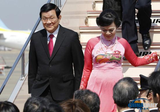 当地时间2014年3月16日,日本东京,越南国家主席张晋创携夫人到访日本,抵达羽田国际机场。
