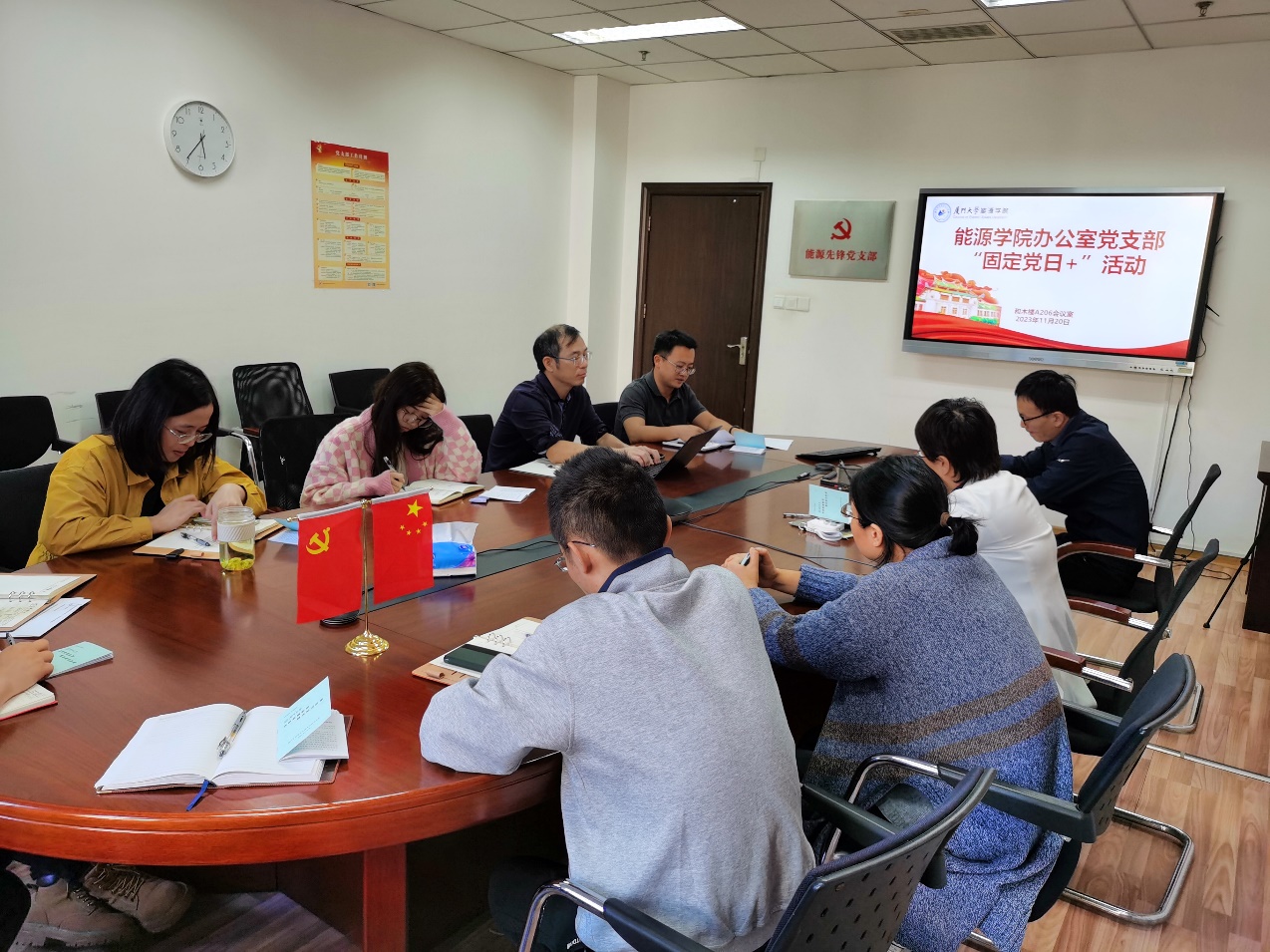 2023年11月,能源学院办公室党支部先后开展政治理论学习、“固定党日+”活动。活动由院办支部书记、学院党委副书记罗俊峰同志主持,学院办公室主任张正泓、工程师胡晓慧、财务秘书汤再鸣三位非党员列席。