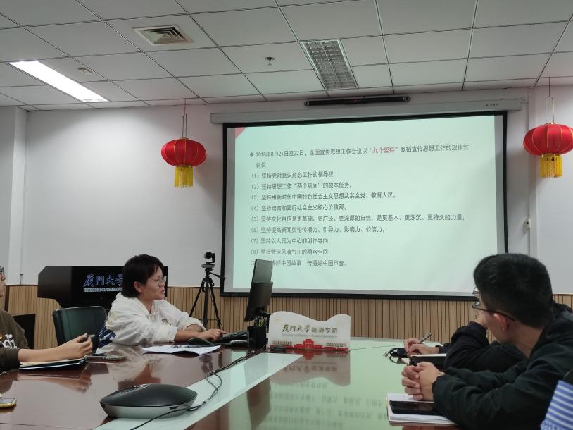 党课第二部分,着重让各位本科生党员了解为什么要学习习近平文化思想。罗俊峰从教师和学生两个维度向同学们做了阐释,她提到要站在教育强国的高度来认识教师学习习近平文化思想的重要意义。教师队伍建设是建设教育强国最重要的基础工作,高校教师应该了解熟悉把握落实好习近平文化思想的各项要求,特别是“七个着力”。身为厦大教师,更应该把厦大精神、厦大文化、厦大气度内藏于心、外化于行。要坚持不懈用新时代中国特色社会主义思想铸魂育人,着力加强社会主义核心价值观教育,引导学生树立坚定的理想信念,永远听党话、跟党走,矢志奉献国家和人民。作为厦大学生,要从理想信念和日常行为坚定文化自信,认同中华文明,增强做中国人的志气、骨气和底气,以实际行动参与和建设中华文明的现代文明。