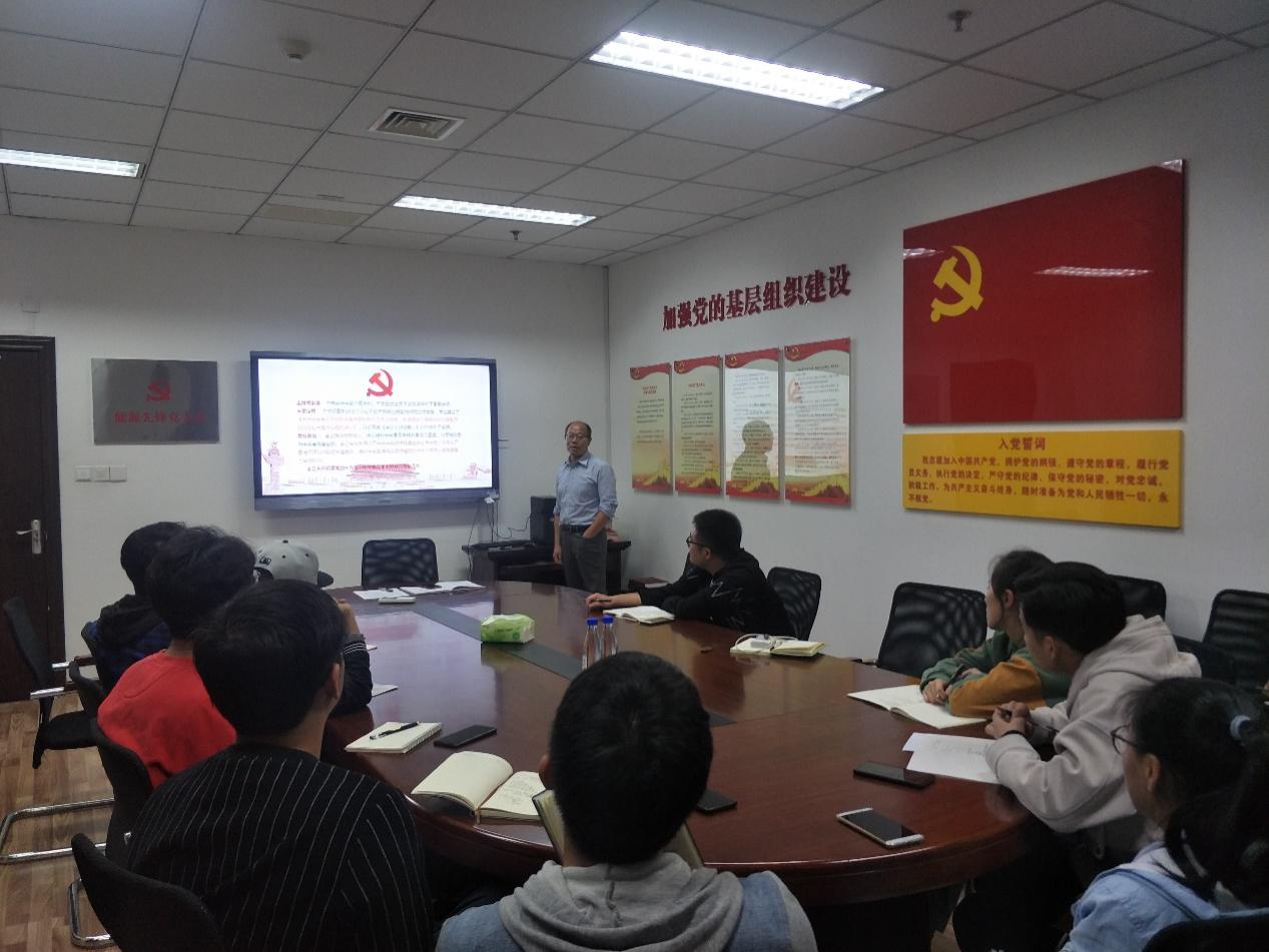 扎实开展“不忘初心、牢记使命”主题教育,进一步学习贯彻党的十九届四中全会精神,11月16日晚上,院党委副书记马兆海为2019级化学能源研究生党支部、2019级第三研究生党支部讲授专题党课《迈向“中国之治”新境界》。
