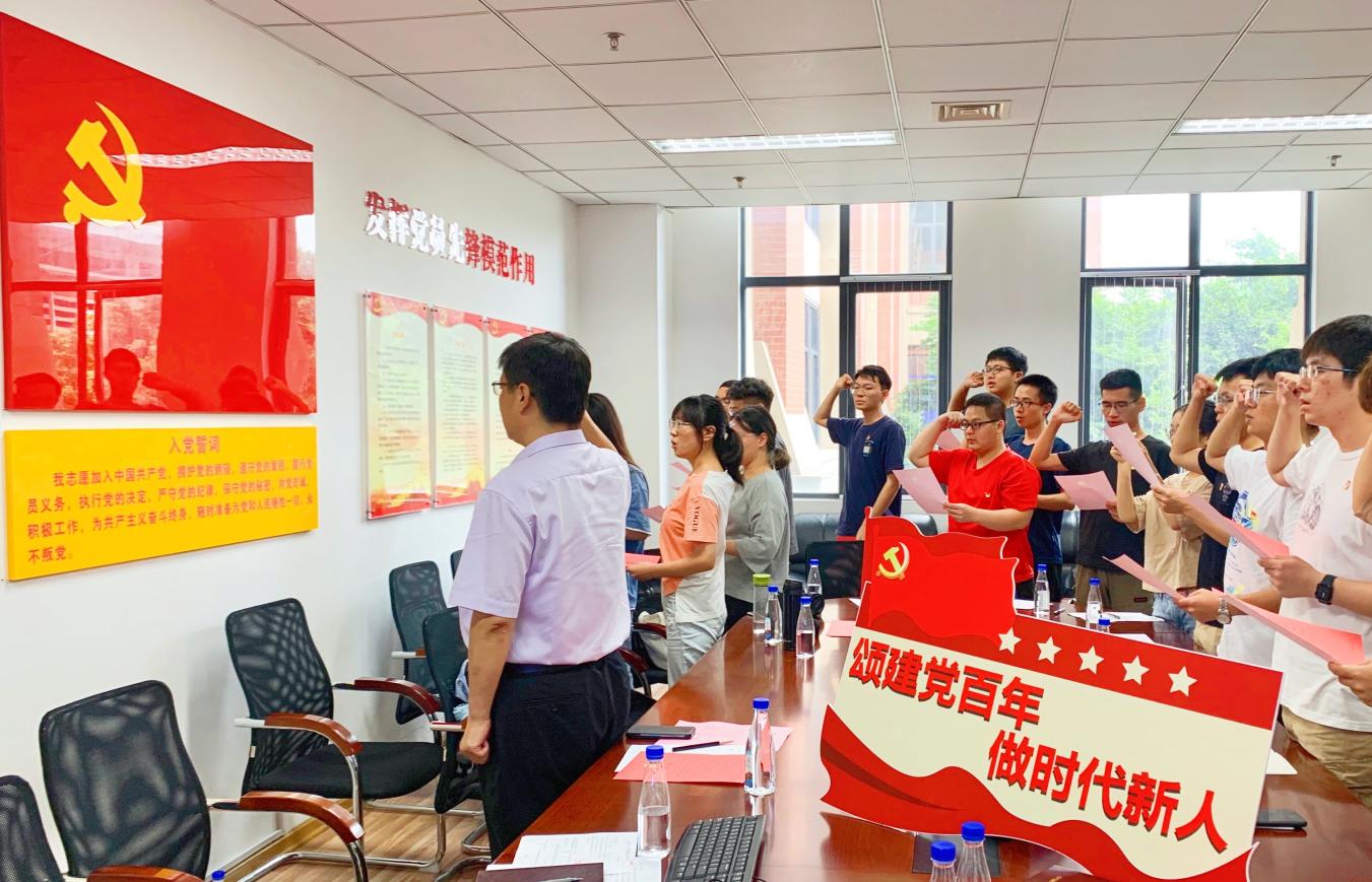 分享结束后,在张军奎的领誓下,全体党员面对党旗重温入党誓词。铮铮誓言是毕业生党员们将初心化为奋斗青春的决心,更是大家将使命转化为中华民族伟大复兴的担当。