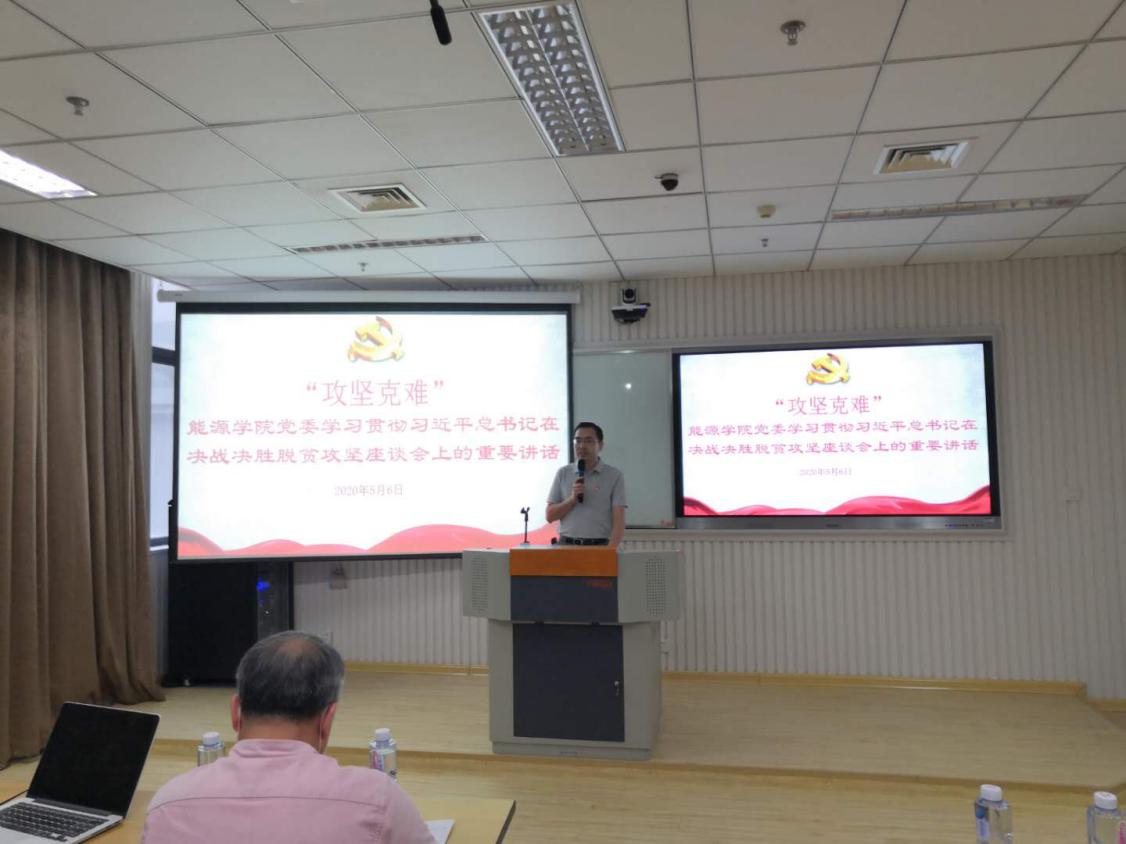 今年是决胜全面建成小康社会、决战脱贫攻坚之年。能源学院党委加强组织领导,将双周政治理论学习作为学院党委抓好师生思想政治教育、落实意识形态工作责任的重要平台。5月6日,院党委书记孙梓光从我国脱贫攻坚取得决定性成就、高度重视打赢脱贫攻坚战面临的困难挑战、确保高质量完成脱贫攻坚目标任务、加强党对打赢脱贫攻坚战的领导等四个方面,带领全院教工学习了习近平总书记在决战决胜脱贫攻坚座谈会上的重要讲话精神,要求全院师生要压实攻坚责任,充分发挥高校教育资源优势,持续发力、狠抓不懈,助力教育脱贫攻坚战取得全面胜利。