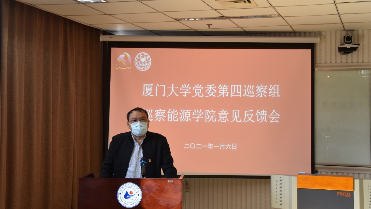 1月6日上午,厦门大学党委第五轮巡察第四巡察组巡察能源学院意见反馈会在和木楼A221会议室召开。第四巡察组组长王康平,党委巡察办副主任洪真裁,第四巡察组副组长杨蔷,巡察组联络员戴丹妮出席大会。大会由能源学院党委书记孙梓光主持,学院党政领导班子成员、在职教职工参加了会议。
