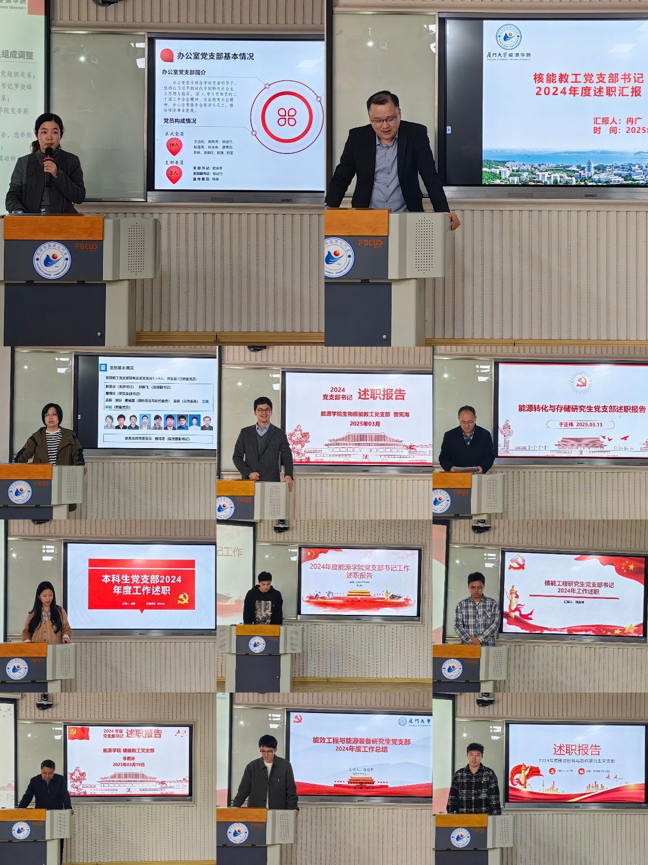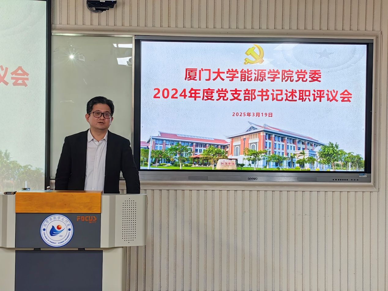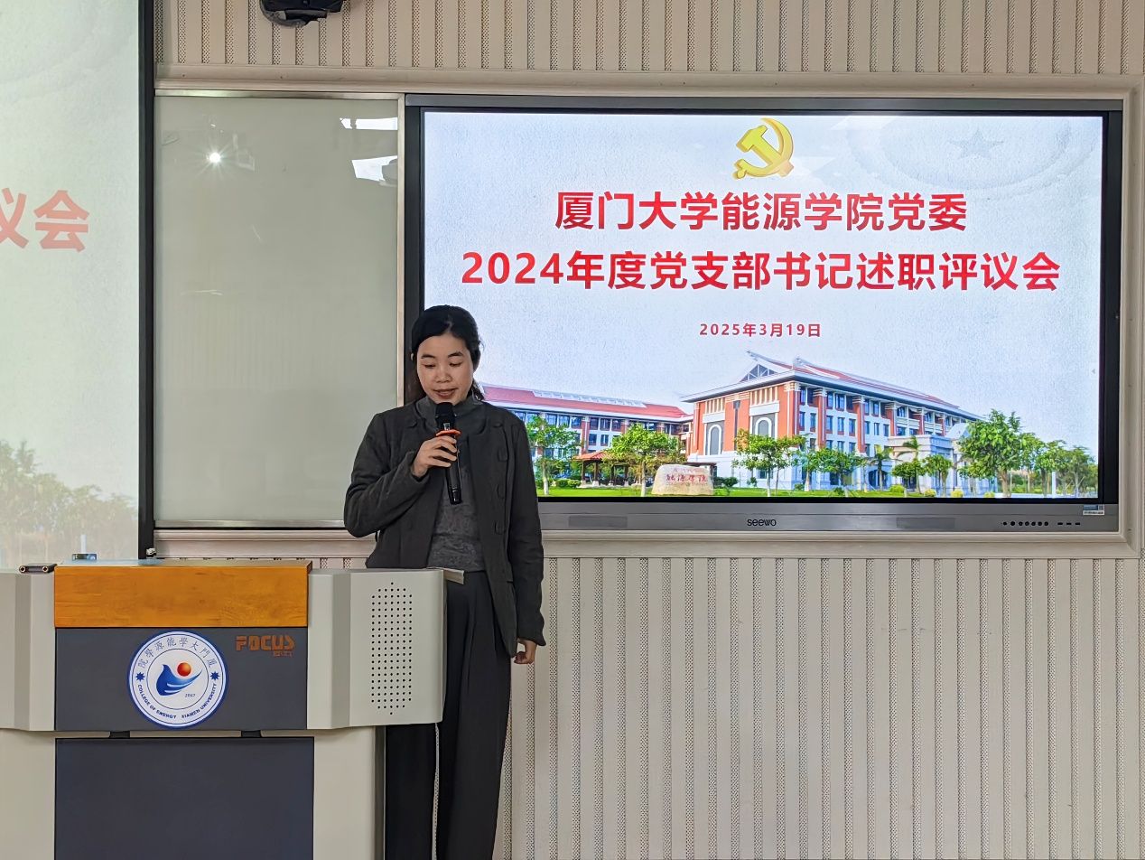 3月19日下午,能源学院党委在和木楼A221会议室召开2024年度党支部书记述职评议会。学院党委委员、师生党支部书记、支委参会,党委副书记赖炜芳主持。述职评议会以“一述一评”的形式全面总结过去一年党建工作成效,剖析问题不足,擘画未来发展蓝图。11位师生党支部书记围绕学习贯彻习近平新时代中国特色社会主义思想、党的二十届三中全会精神、全国教育大会精神以及学校第十二次党代会精神等主题,结合支部实际,从党建工作进展、特色亮点、存在问题及改进措施等方面进行述职,随后由联系该支部的党委委员逐一提问、点评。