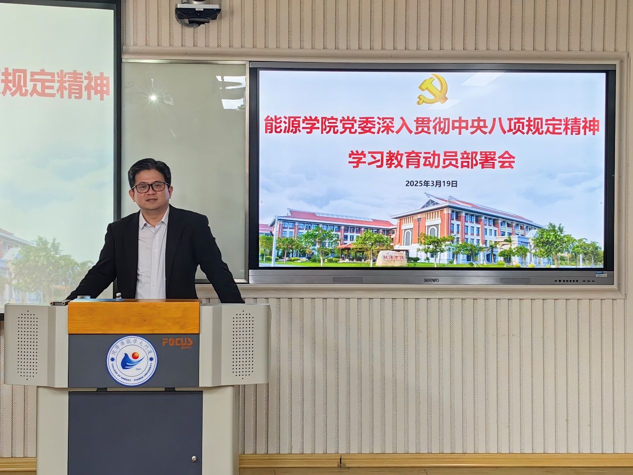 3月19日傍晚,能源学院党委召开党委会(扩大)会议,传达学习中央党的建设工作领导小组、教育部党组有关会议精神和《中共中央办公厅关于在全党开展深入贯彻中央八项规定精神学习教育的通知》要求,传达学习校党委常委会(扩大)会议精神和《厦门大学深入贯彻中央八项规定精神学习教育实施方案》要求,研究部署学院贯彻落实工作,在全院正式启动深入贯彻中央八项规定精神学习教育。学院党委书记王洁松主持会议并讲话,学院党委委员,各党支部书记、支委出席会议。