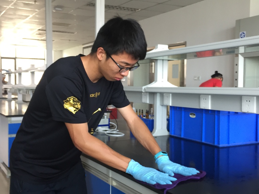 本次实验室清扫活动总共覆盖了和木楼A栋6间、C栋3间共计900多平方米的实验空间。活动期间,学生党员们拎水抹桌子、拖地板,干得不亦乐乎。同时,许多党员都回想起在实验室里做实验的场景,在擦拭仪器外表时,总会笑着说道自己和小伙伴做实验时的数据,有些同学还会说出自己当时做的数据。同时,在劳动中,同学们再次温习了实验室安全操作规范,不少同学表示这样的主题活动,不仅在同学们中树了党员的旗帜,也为学院做了自己的贡献,心里非常快乐。