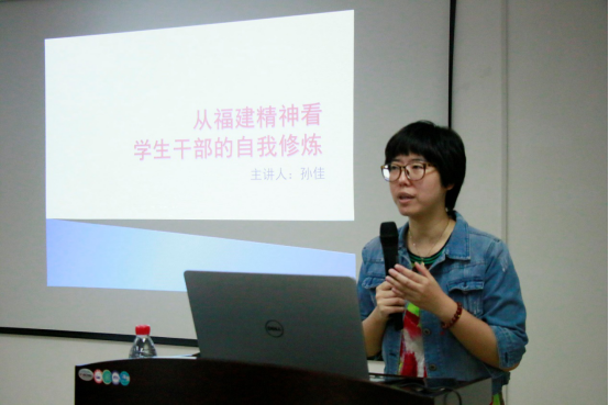 5月30日晚上7点,我院党委副书记孙佳老师以“从福建精神看学生干部的自我修炼”为题,为能源学院第五期学生骨干培训成员及第四届团总支学生会、宣传中心全体成员讲了一堂精彩的党课,党课由黄诗雨老师主持。