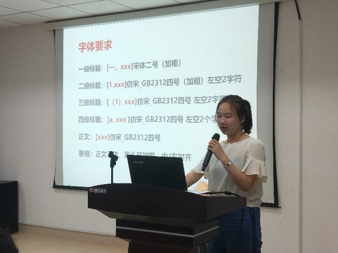 前宣传中心干部佟佳宁在应用文书撰写讲座上为干训成员讲解了学生工作相关文书撰写与office软件使用的技巧。她以策划如何书写入手,从封面要素的完备、目录设计的技巧、策划书的内容和格式要求等方面做了详细的介绍,并讲解了通知消息、邮件等日常文书的书写方式、篇幅和措辞。干训班成员在讲座后还完成了相应的练习,达到学以致用的目的。
