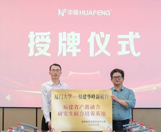 接着,举行厦门大学—福建华峰新材料产教融合研究生培养基地授牌仪式。本次产教融合研究生培养基地的授牌,是双方在前期合作基础上的进一步深化,对推动校企产教融合培养研究生,发挥方华玉董事长、李天源副总裁等行业导师的作用具有重要意义。