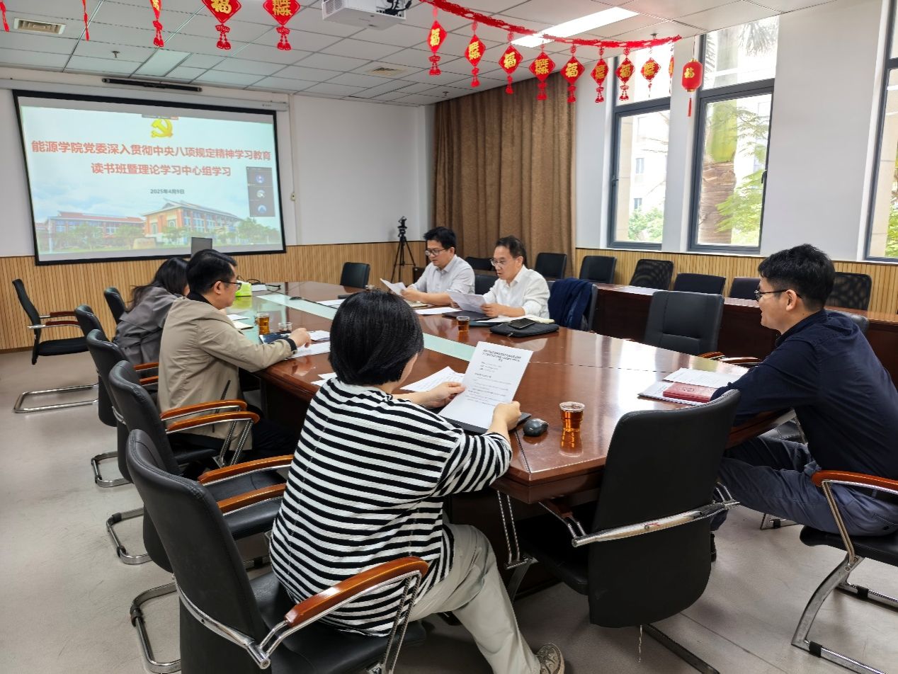 4月9日上午,能源学院党委深入贯彻中央八项规定精神学习教育第2期读书班暨2025年第4次理论学习中心组学习会在和木楼A203会议室召开。学院党委书记王洁松主持会议,学院党委委员、理论学习中心组成员参加。