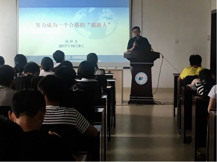 10月9日下午,学院党委书记孙梓光在和木楼A221以努力成为一个合格的“能源人”为题,为2017级本科新生上了第一堂党课。