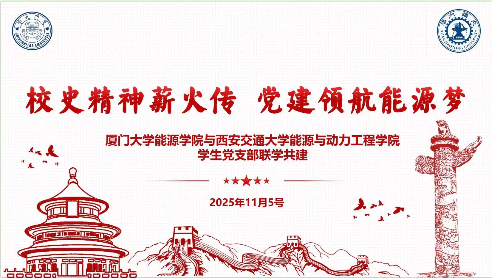 为深入学习贯彻国家能源发展战略,探索新时代学生党支部建设的新路径,11月5日晚,厦门大学能源学院本科生党支部与西安交通大学能源与动力工程学院2024级核科学与技术第二党支部相聚“云端”,举办以“校史精神薪火传,党建领航能源梦”为主题的联学共建活动。