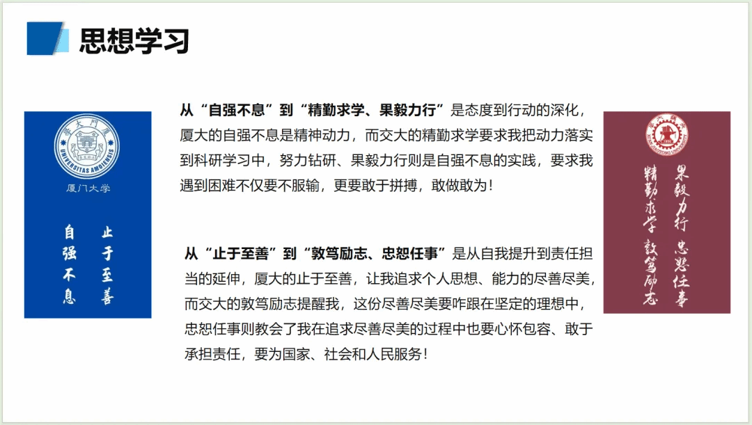 思想的碰撞,最终要落脚于青年的行动。西安交通大学能源与动力工程学院2024级硕士研究生、厦门大学能源学院院友吴常杰同志以《从翔安到创新港,从自强不息到精勤求学》为题,分享了他作为青年学子,在两校不同文化熏陶下的求学感悟与思考。他的分享亲切而真挚,体现了当代能源学子在“自强不息”与“精勤求学”的校训精神指引下,对学术与理想的共同追求。