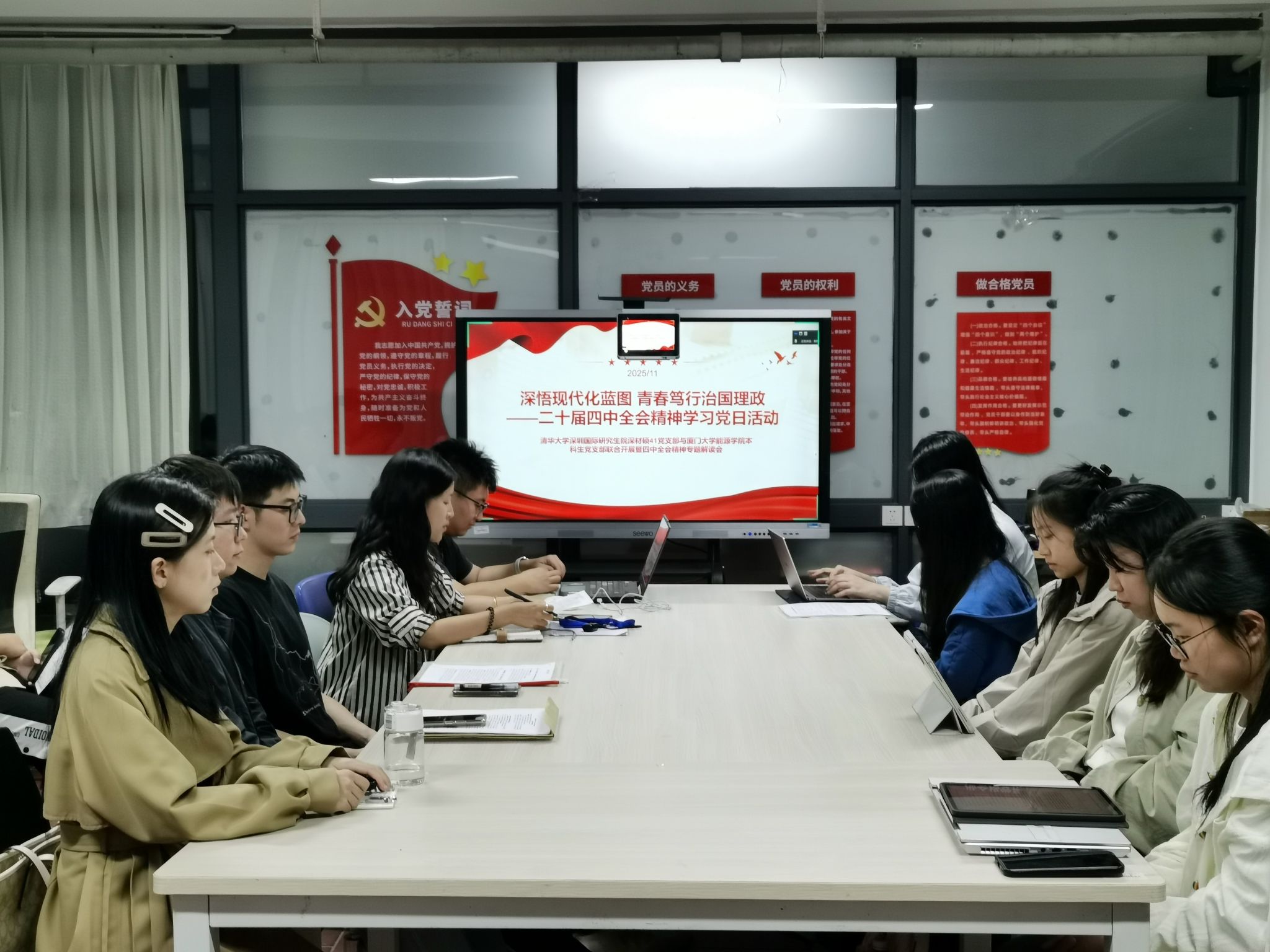 为深入学习贯彻党的二十大精神,探索新时代学生党支部建设的新路径,加强高校间学生党支部的交流与合作,11月13日晚,厦门大学能源学院本科生党支部与清华大学深圳国际研究生院深材硕41班党支部,于厦门大学一站式学生社区映雪2-108室成功开展“联学共建”活动。