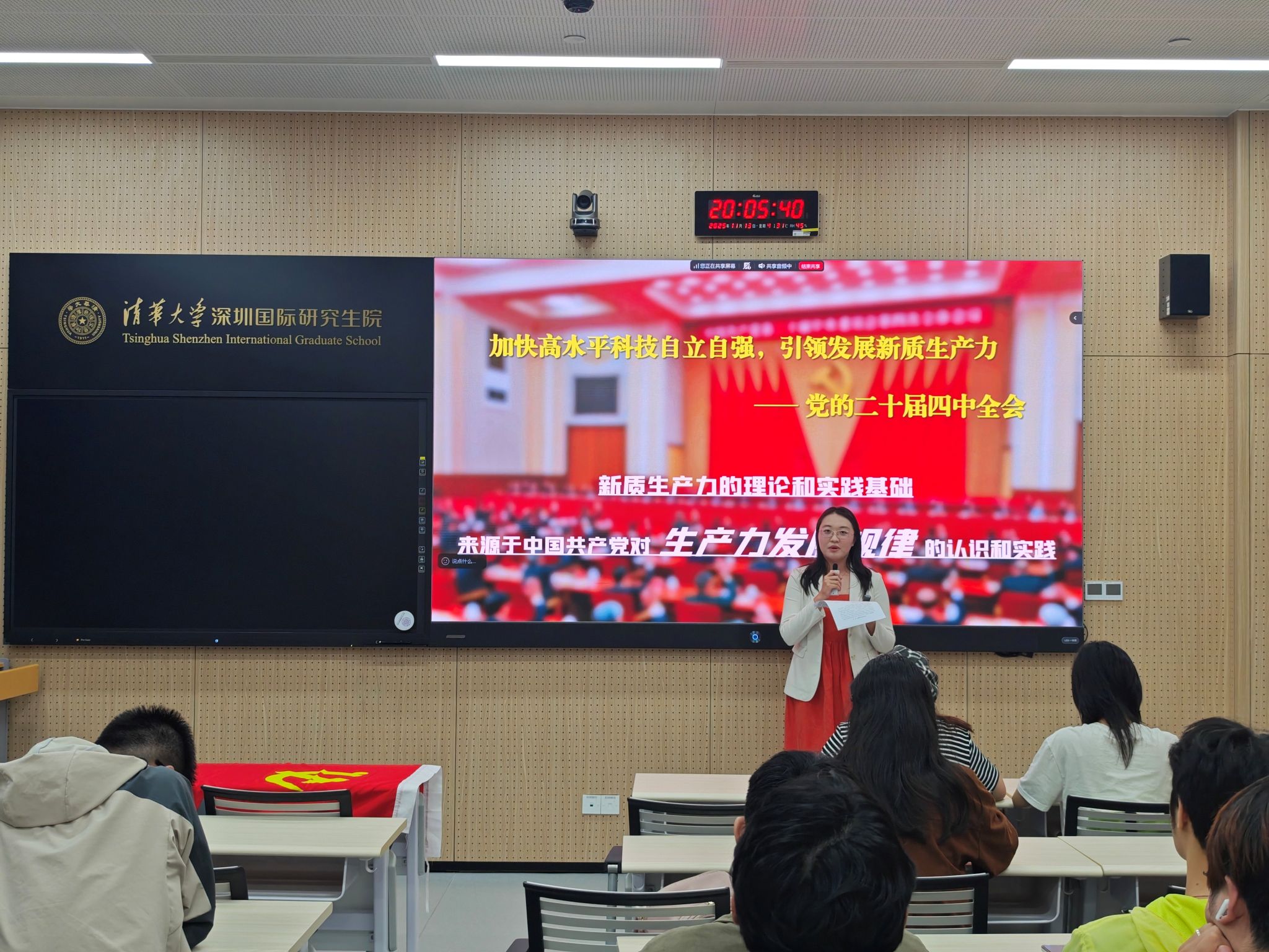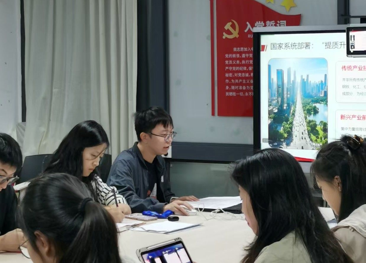 清华大学深圳国际研究生院刘一静同志以“工业双城记之新质‘史’话”为主题,牵头开展理论学习。她立足沈阳与深圳两座工业城市的发展变迁,系统地为大家讲述了新质生产力理论形成的历史脉络与实践根基。从沈阳老工业基地全国劳动模范尉凤英的技术革新事迹,到深圳华为、比亚迪等标杆企业的创新实践与突破成果,这些实例深刻诠释了“创新是引领发展的第一动力”的核心要义。她的精彩讲述为在场青年学子带来深刻的思想启迪。