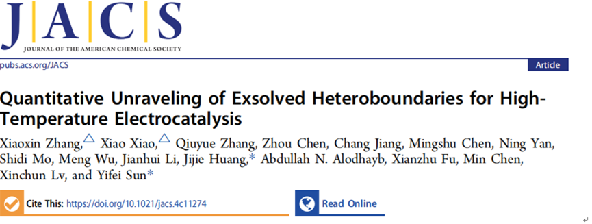 近日,我院孙毅飞副教授团队对钙钛矿原位析出金属-氧化物异质界面在高温电催化(CO2RR)反应的活性位点进行了全面细致的机理研究。该研究以Quantitative unraveling of exsolved hetero-boundaries for high temperature electrocatalysis为题,发表在化学材料领域顶级期刊Journal of the American Chemical Society上。