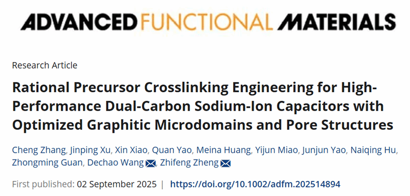 近日,我院储能学系王德超助理教授、郑志锋教授团队提出“前驱体交联工程”创新策略,以单一酚糠醛树脂为前驱体,通过精准调控交联度,成功同步制备出优化的硬碳阳极与多孔碳阴极,构建的双碳钠离子电容器(SICs)展现出优异的能量密度、功率密度及宽温域稳定性。相关研究成果以“Rational Precursor Crosslinking Engineering for High-Performance Dual-Carbon Sodium-Ion Capacitors with Optimized Graphitic Microdomains and Pore Structures”为题,发表在《Advanced Functional Materials》,为低成本、高稳定性钠离子储能器件的工业化应用提供了新路径。