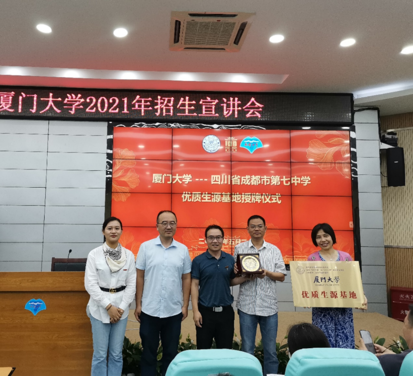 5月27日晚上,授牌仪式在成都第七中学举行。成都第七中学副校长蔡泽勇老师、教务处主任朱文英老师和高三家长出席了本次活动。