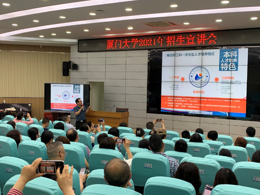 授牌仪式结束后,大家共同观看了厦门大学百年校庆宣传片,而后两位教授分别开展了厦门大学能源学院及人文学院招生宣讲,详细分享了两院发展现状、校园生活、本科人才培养特色、升学就业等。