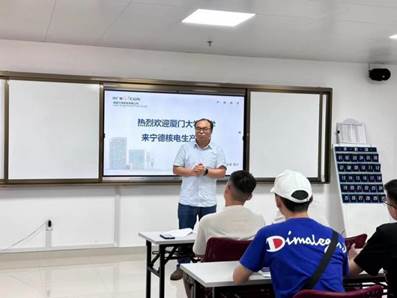 公司党群工作部的郭婷婷老师带领实习生们进行了宁德核电企业文化培训课程的学习。郭老师首先从党的百年奋斗和传承红色基因两个方面介绍了核工业的起步和宁德核电有限公司的发展历程,同学们通过“0.01mm的较真”“小小水套的八年之痒”等模范事例进一步了解和体会到了公司“严慎细实”的工作作风和品牌文化,其中包括“发展清洁能源,造福人类社会”的使命,“安全第一,质量第一,追求卓越”的基本原则等等。课上同学们积极回答郭老师提出的问题,氛围热烈。