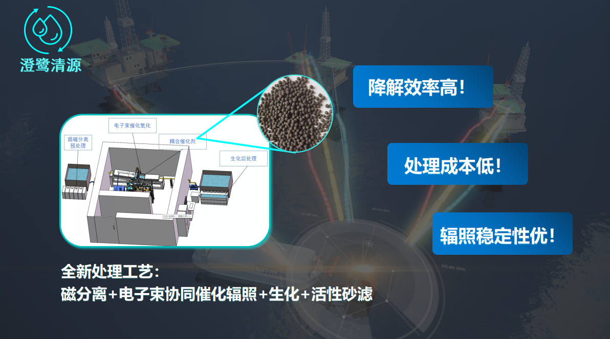 “澄鹭清源-辐照催化耦合技术处理污水系统”由我院曹留烜副教授担任指导老师,团队成员由雷雨电、周宇轩、麻诺文、邓雅兰、肖海鹏五名研究生组成。团队自主研发的新型催化剂,具有稳定性强,利于回收,成本低的特点,已经在多个不同污水样中取得了良好的效果。并通过各项测试,能够达到一级A直排标准。创新型的污水传送装置设计,大大提高电子束能量的利用效率,配合催化剂的使用,可以节40%的耗电量的基础上,达到更好的处理效果。