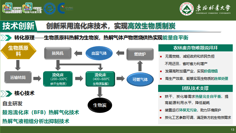 “炭薪赋能——移动式生物质一体化炭化装置”由我院王夺教授担任指导老师,团队成员由苏浩宇、雷胜文、黄晓庆、胡平四名研究生组成。团队创新性地设计了移动式生物质炭制备装置,将生物质直接投入装置,进行生物质转化,得到生物炭产品。生物质在装置内裂解为生物炭及可燃气体,旋风分离器对生物质炭进行分离收集得到产物,气体导入燃烧室内燃烧,为热裂解过程提供热量。整个装置实现能量自平衡,无需外界热能供给。同时全套装置可由两台卡车装载,通过装置的低成本移动,避免生物质资源的高成本运输,实现生物质的大规模原料化利用。