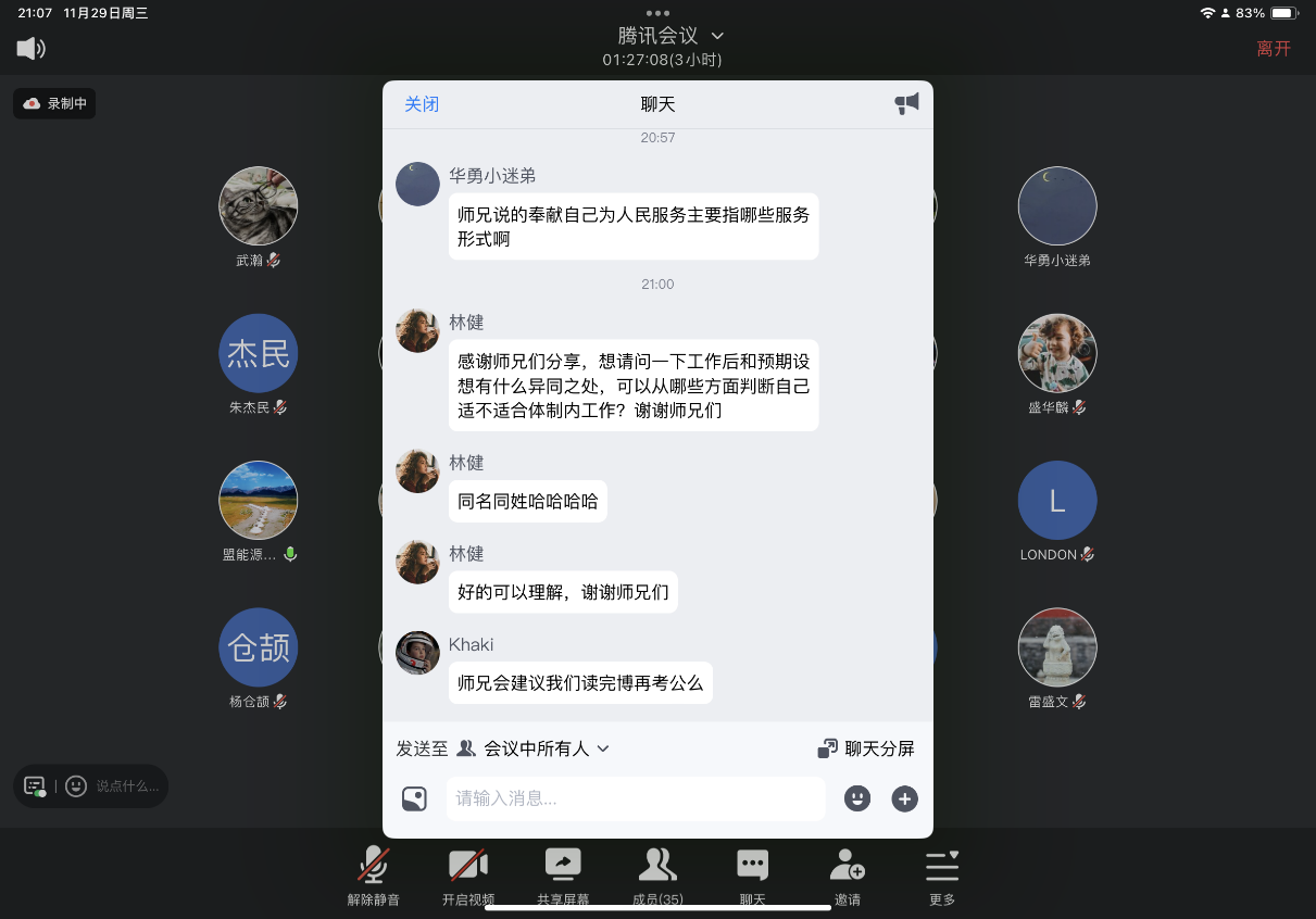 本次分享会两位优秀师兄通过自己的亲身经历和备战经验为学弟学妹们解答了各种疑惑,也促使准备求职的学弟学妹们与优秀师兄之间搭建了交流平台,增强了求职道路的信心。院研究生会也将继续紧扣服务青年的工作生命线,持续开展“我为青年办实事”系列实践活动,真正为青年学生办实事、解难题。