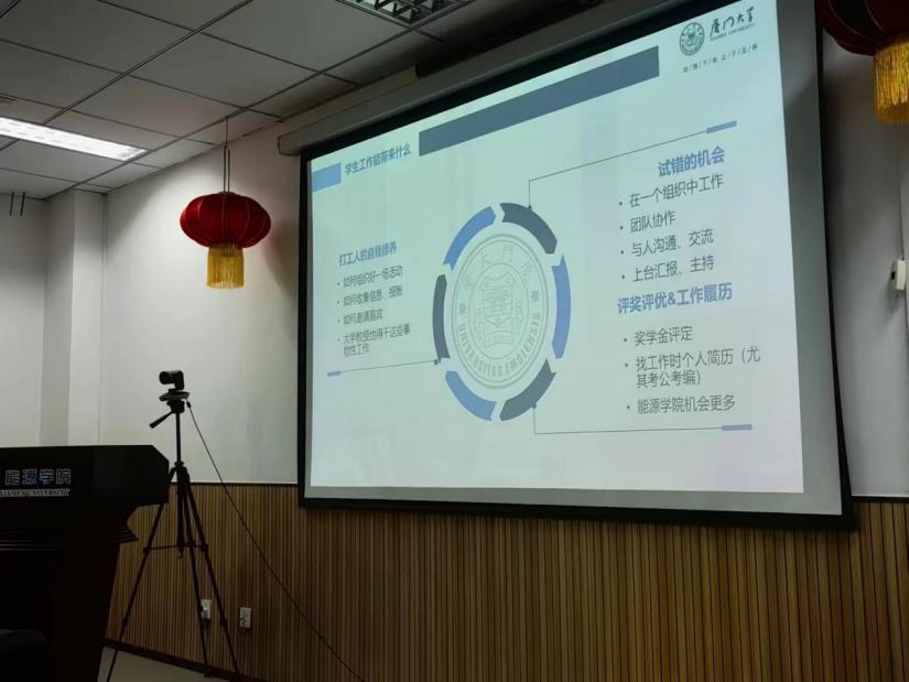 5月10日晚上七点,厦门大学能源学院第九届团总支学生会及宣传中心干事培训开班仪式及第一天干事培训在和木楼A221顺利举行。本次干训为期六天,旨在增进团总支学生会及宣传中心学生干部之间熟悉程度,进一步提高学生干部的工作能力和抗压能力,培养一批团队意识较强、综合素质较高、服务形象良好的学生干部。