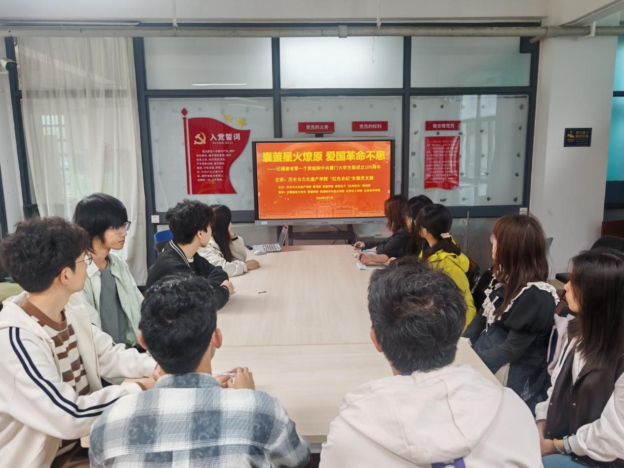 今年寒假期间,历史与文化遗产学院“红色史纪”先锋党支部组织15支队伍开展“重走百年星火路”社会实践,跨越6省13城收集相关图文史料,完成《囊萤星火燎原——中共厦门大学支部成立100周年图片档案纪实》党史资料的初稿编写。本次联学邀请了该支部支委、2025级考古学专业硕士研究生孙桂林同学担任主讲人。