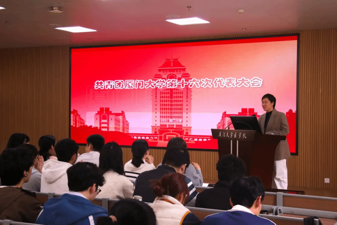 为深入学习贯彻厦门大学第十六次团代会精神,持续加强跨学科学生骨干队伍建设,提升青年学生的综合素养与履职能力,3月24日中午,医学院、能源学院、柔性电子(未来技术)研究院2026年春季学期联合团校暨学生骨干培训班开班仪式在爱礼楼104报告厅举行。柔性电子(未来技术)研究院党总支书记蒲晓业、翔安校区团工委书记兼校团委副书记郑音、医学院党委副书记辛晓丹、能源学院党委副书记赖炜芳出席活动,各单位团委书记、副书记及180余名参训学生骨干参与仪式。仪式由能源学院团委书记符晓珠主持。