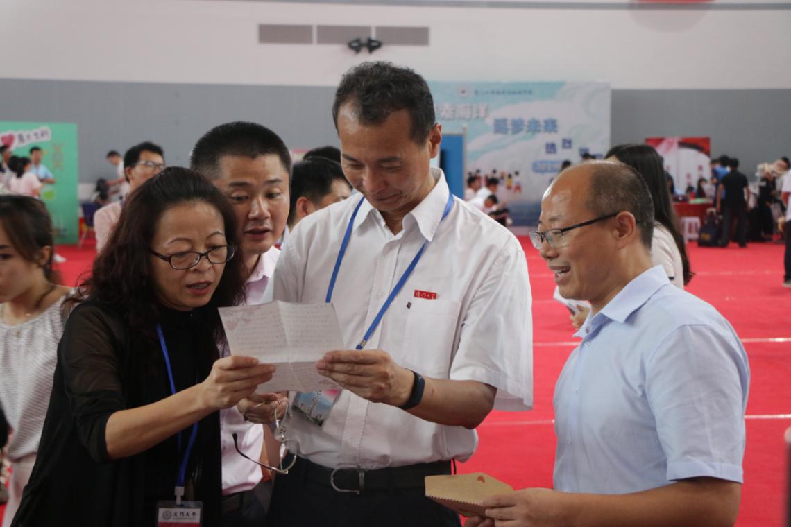 校党委副书记赖虹凯一行、校长助理陈光一行来到迎新现场了解注册情况,阅读了我院党员给新生的一封信,纷纷表示认可与嘉许。