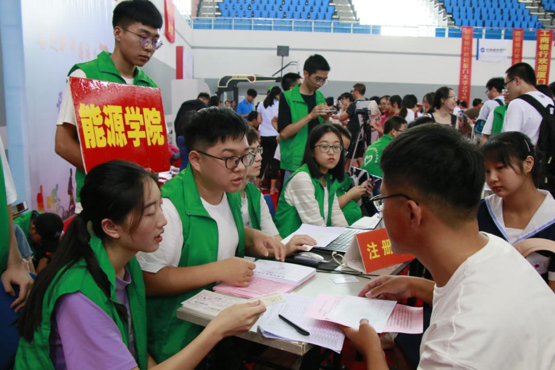 辞夏迎秋,天气依旧温暖,在这阳光明媚的日子里,厦门大学能源学院迎来了又一批崭新的面孔。洋溢着青春与活力,怀揣着激情与梦想,59名本科生和59名研究生在今天加入了能源大家庭,他们将在这里开启崭新的人生篇章,度过充实而精彩的大学时光。为献礼新中国成立70周年,能源学院2019年迎新聚焦“我和祖国共成长,我为祖国添能源”主题,将爱国主义教育提前至迎新报到时,引导新生心系祖国,以青春告白祖国。