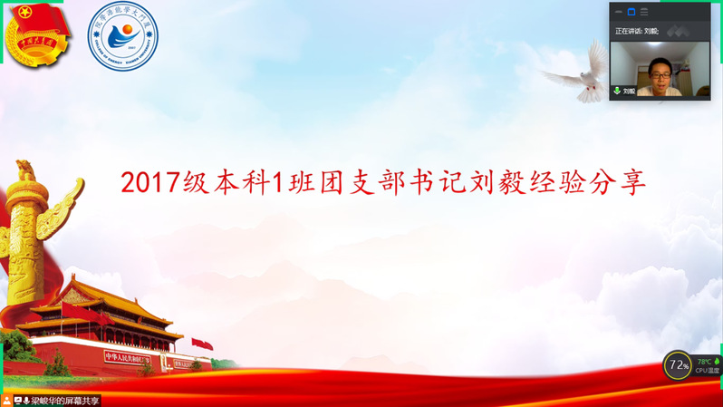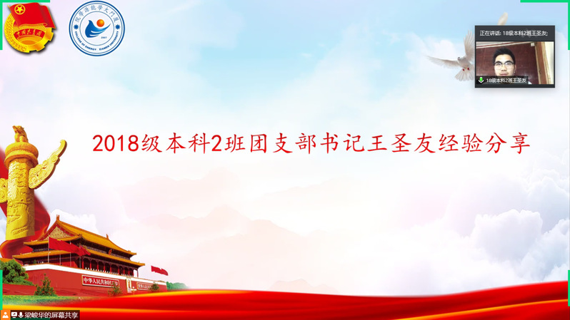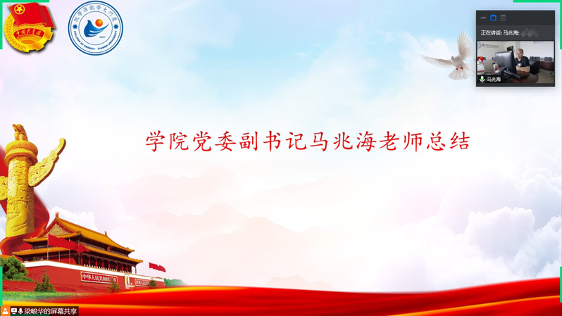 最后,能源学院党委副书记马兆海老师总结致辞。他先高度肯定了我院在团学工作方面取得的成绩,同时代表学院党委对各位团支书的辛勤付出表示诚挚感谢。接着,在青年节这个青年专属的节日,他回顾了十八大以来习近平总书记在五四期间的重要讲话精神,援引总书记的殷切话语,勉励团支书们认真学习、不懈奋斗。最后,他希望大家都能利用好在家的时间,多为家里帮忙分忧,并期待早日在厦园见到大家。