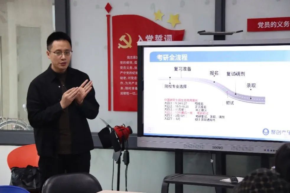 为了增进同学们对于考研院校专业选择信息的了解,帮助同学们更好地选择考研目标院校,4月10日下午,能源学院邀请了聚创考研机构的廖志高老师开展“源梦启航”职业生涯规划与就业指导系列活动之能源专业考研专场指导,讲座在一站式学生社区映雪2-108进行。