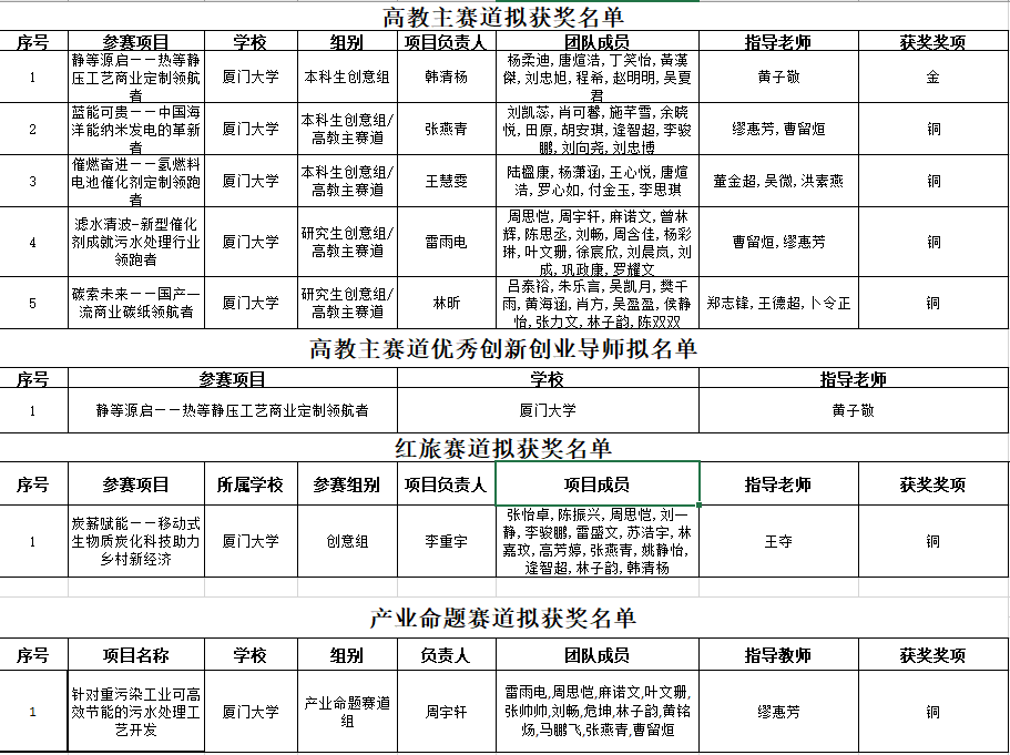 附:在第九届福建省“互联网+”大学生创新创业大赛获奖名单