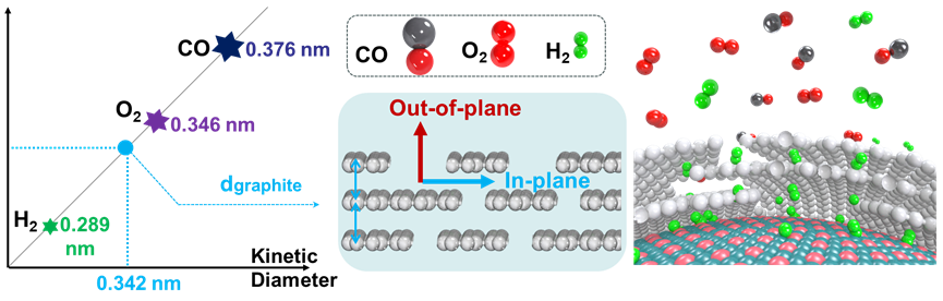 近日,我院储能学系周尧副教授和李君涛教授团队研究发现,当金属催化剂被石墨碳薄层包覆时,由于石墨薄层固有层间距为0.342 nm,其可作为天然分子筛,允许H2分子的三维扩散,但在沿平面方向上阻挡了动力学直径较大的CO和O2分子(分别为0.346 nm和0.376 nm),从而显著降低金属的氧化和CO中毒。该工作揭示了石墨碳包覆层在稳定过渡金属氢氧化催化剂方面的独特优势。