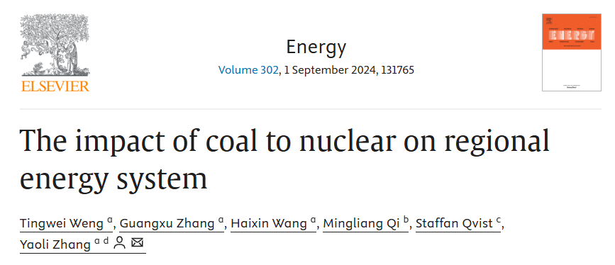近日,我院张尧立副教授课题组在“煤电改核电”研究中取得新的进展,相关成果以“The impact of coal to nuclear on regional energy system” 为题发表在Energy。