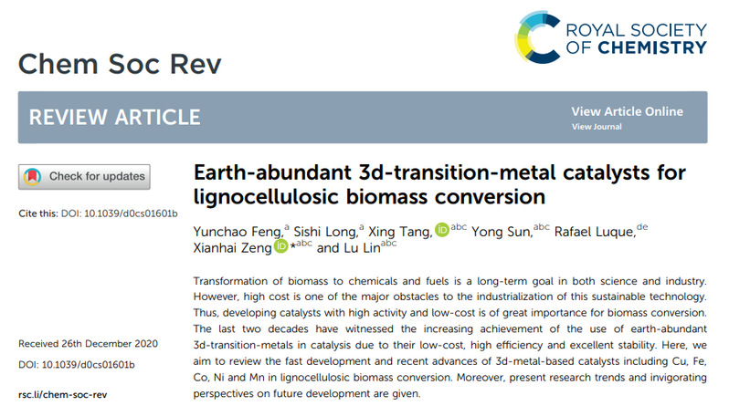 近日,厦门大学能源学院林鹿教授研究团队受邀撰写的综述论文“Earth-abundant 3d-transition-metal catalysts for lignocellulosic biomass conversion”发表于Chemical Society Reviews(IF=42.8), DOI: 10.1039/D0CS01601B。该文全面总结了地表丰富的3d过渡金属催化剂在木质纤维素转化领域的研究进展,并对当前挑战和未来发展方向做出了深入思考和前瞻性展望。