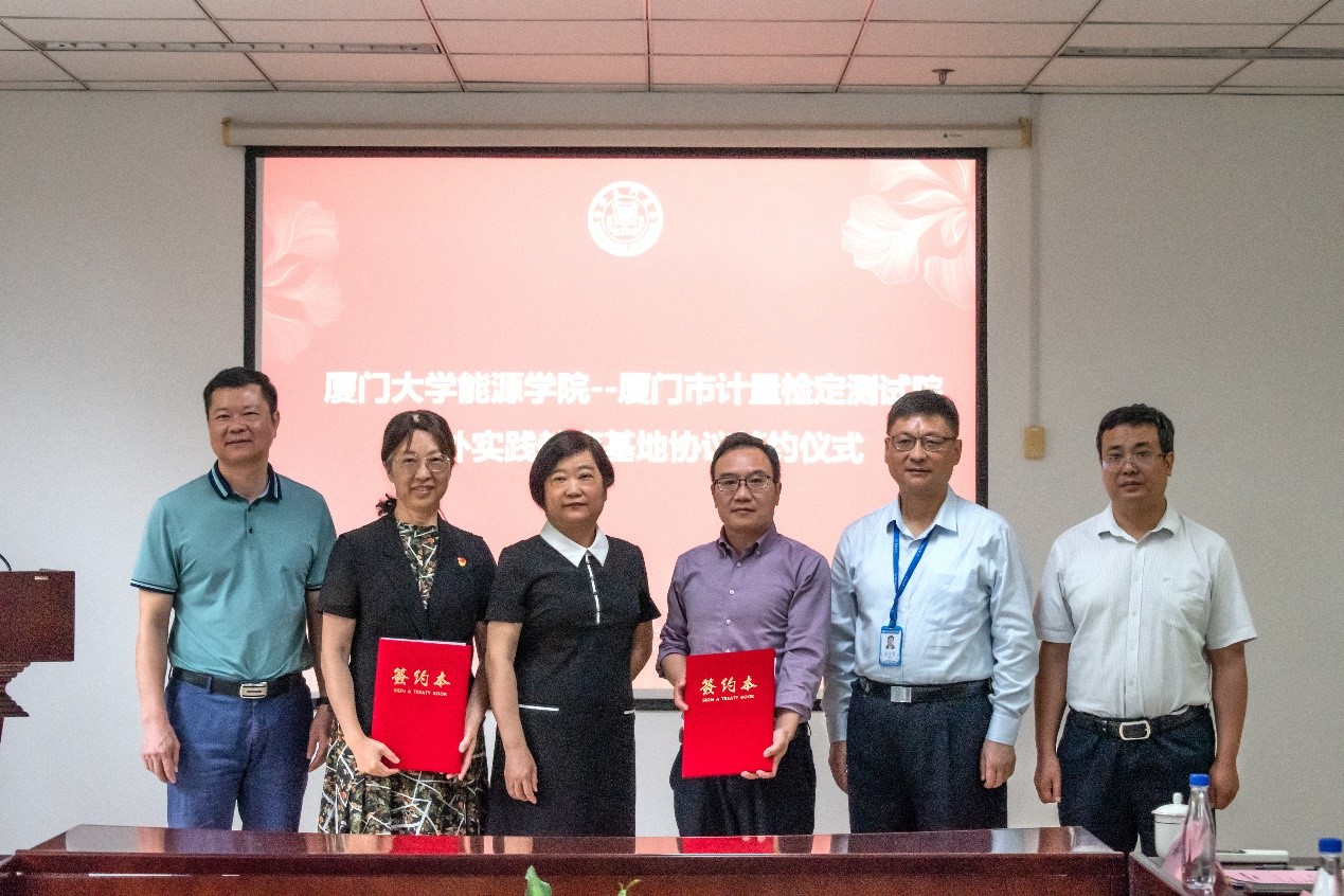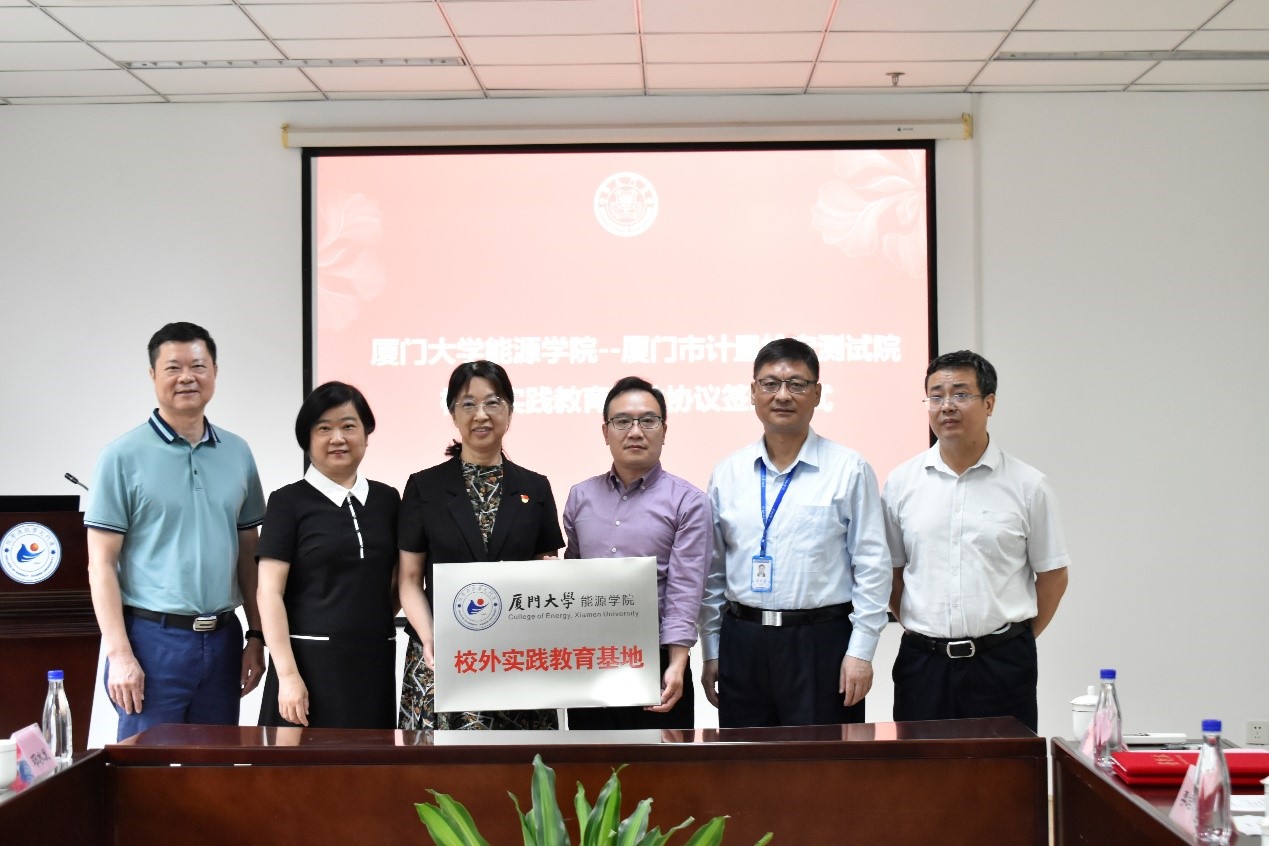 为推动和开拓新能源学科在计量领域的产学研合作示范,5月16日上午,能源学院与厦门市计量检定测试院(以下简称市计量院)合作共建活动在厦门大学翔安校区顺利举行。厦门市市场监督管理局副局长、二级巡视员曾琳,市局计量处、市计量院负责人,能源学院党委书记张军奎、副院长(主持工作)郑志锋教授等出席。能源学院与市计量院签署了“厦门大学能源学院校外实践教育基地”合作协议,举办了校外实践教育基地授牌仪式,郑志锋副院长向市计量院3名专家颁发能源学院校外导师聘书。