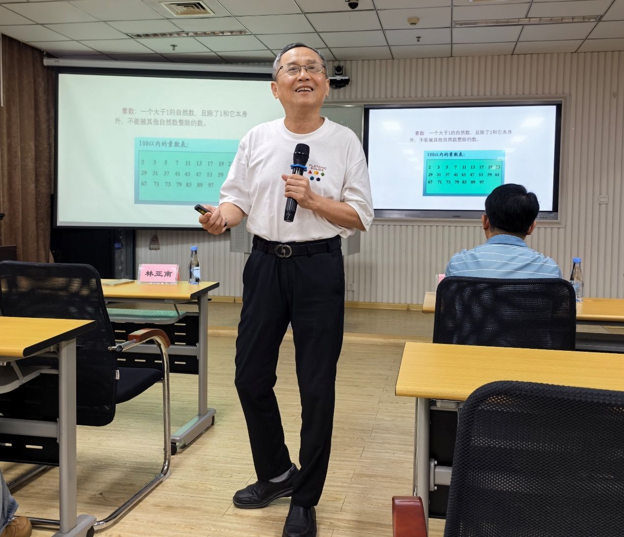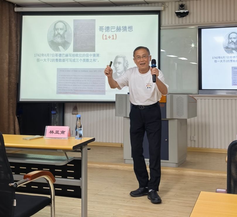 林亚南教授从著名的哥德巴赫猜想与陈景润之间的故事开篇,带领师生走进陈景润,了解陈景润的传奇人生,领略陈景润的精神魅力。林亚南教授从“传奇生涯——科学家的艰辛与悲壮、传奇性格——科学家的执着与毅力、卓越的科学奇迹——科学家的贡献与价值、特殊年代的奇特影响——科学家的精神魅力”四个方面,介绍了陈景润的传奇人生和精神魅力。在“痴迷学业、初露锋芒、石破天惊、执着追求”四个篇章中,林亚南教授声情并茂为师生讲述了陈景润在少年时期对数学知识抱有强烈的求知欲,痴迷学业;在青年时期扎根数论研究,证明并发表“1+2”论文,研究成果震撼国际数学界,为国家民族获得国际声誉,初露锋芒,并且石破天惊;在数学研究领域上勇攀科学高峰,执着追求了一辈子。